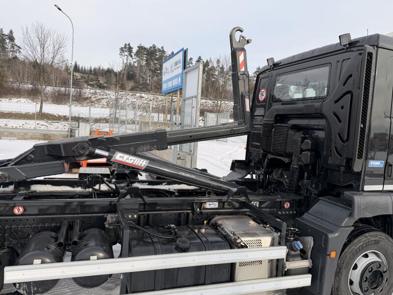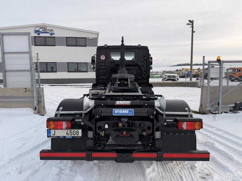 Perfektní stav, ihned skladem, možnost dokoupení záruky na vozidlo na 12 - 24 měsíců, nová nástavba teleskopického nosiče kontejnerů Charvát CTS s nosností 11t., příprava pro přestavbu na TRAKTOR, přední i zadní náprava na vzduchu!, nové PTO a hydr. čerpadlo, bedny na nářadí, LED majáková rampa, LED stroboskopy v přední i zadní části, LED pracovní osvětlení, nádrž na vodu s dávkovačem mýdla, UZÁVĚRKA, KLIMA, NAVIGACE, ... více info na telefonu